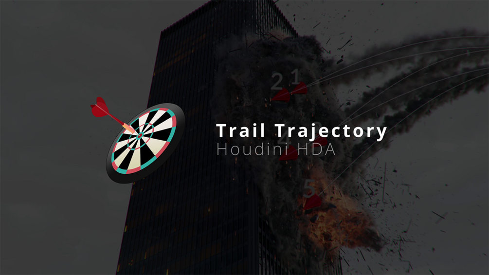 Trail Trajectory HDA is an interactive tool, simply click on your collision geometry to create a new trail and your selected point automatically becomes the impact location, and the impact occurs on the frame you clicked.